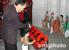 圖:提線木偶寫(xiě)書(shū)法創(chuàng)出“梅州一絕”