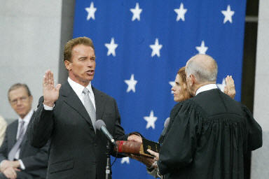 施瓦辛格是在10月7日加州州長罷免選舉中,一舉擊敗因赤字問題而飽受詬病的民主黨州長戴維斯以及其他競爭對手,從而當選新任州長的。