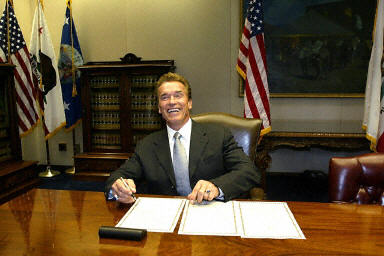阿諾履行了其競選過程中的部分競選諾言,在上班第一天便簽署了廢除汽車登記稅的州長令。據(jù)稱,如果該項政令付諸實施,加州政府的稅收將因此銳減42億美元。