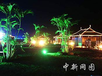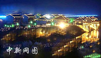 投資100萬元的花博會(huì)夜景工程日前竣工。圖為花博園濱溪茶文化走廊夜景。蔡文原攝