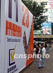 香港特別行政區(qū)區(qū)議會(huì)選舉將于十一月二十三日進(jìn)行投票,在香港街頭區(qū)議會(huì)選舉投票日標(biāo)語引人注目。中新社記者:錢興強(qiáng)