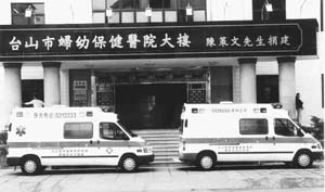 今年10月份,陳策文夫婦回到臺(tái)山與該市婦幼保健醫(yī)院的醫(yī)務(wù)人員開(kāi)座談會(huì)。當(dāng)了解到該院的醫(yī)療用車是由面包車改裝而成,功能不夠完善,影響醫(yī)療質(zhì)量時(shí),陳先生立即決定捐贈(zèng)先進(jìn)醫(yī)療專用汽車給婦幼保健院和斗山醫(yī)院,解決了兩院醫(yī)療用車問(wèn)題。