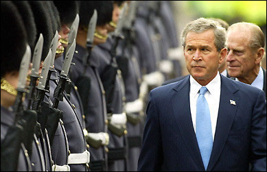 美國總統(tǒng)布什是繼1982年里根訪英以來,第一位正式應(yīng)伊麗莎白女王之邀到英國進(jìn)行國事訪問的美國總統(tǒng)。“歡迎”規(guī)格創(chuàng)新紀(jì)錄,在英國有很多人已提前動(dòng)起來了:1.4萬名警察嚴(yán)陣以待,數(shù)十萬反戰(zhàn)人士整裝待發(fā)。