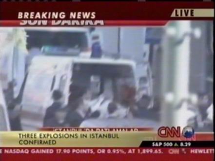 北京時(shí)間11月20日下午,位于土耳其伊斯坦布爾北部的土耳其匯豐銀行總部附近發(fā)生兩次爆炸,部分銀行建筑被摧毀。此后英國駐伊斯坦布爾領(lǐng)事館以及一個(gè)居民區(qū)和一座清真寺也遭到襲擊。圖為爆炸中受傷人員被抬上救護(hù)車。(春風(fēng))