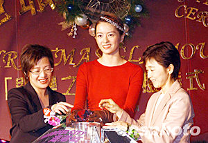 圣誕節(jié)即將到來之際,香港最大型的室內(nèi)購物商場-海港城于11月21日率先亮起圣誕燈飾,今年海港城的機動燈飾以《閃爍之城》為主題,圖為明星梁詠琪(中)與海港城置業(yè)有限公司執(zhí)行董事李玉芳(左)等啟動機動圣誕燈飾。作者:洪少葵