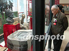 進入一樓大展廳,迎面就是巴金文學院的代表性雕塑——巴老青銅像,由四川省著名雕塑家譚云創(chuàng)作,被放置在一個高五米、寬三點六米的基座上,基座后面是一堵漢白玉墻,上刻巴老手跡“講真話——把心交給讀者”。二樓為大型展覽《世紀真情》,也于今天下午開幕。
