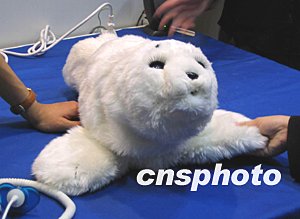 二十二日在日本東京進行的國際機器人展上。一種模擬海豹幼獸形象而研制的人工智能寵物頗受歡迎。據(jù)介紹,這個取名為“帕羅”的機器寵物具備一定的觸覺、嗅覺和聽覺功能,并能夠以此而與人進行互動交流,特別適合于長期住院的兒童患者和福利設施中的高齡者的心理扶助。中新社記者:王健