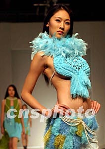 浙江工程學(xué)院國際時裝技術(shù)學(xué)院學(xué)生錢麗霞的作品《漣漪》二十三日在北京獲得第二屆中國針編織時裝設(shè)計(jì)大賽頭獎。中新社記者:史利