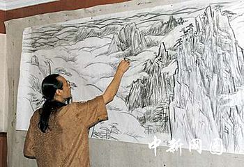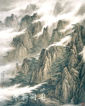 董希源山水與花鳥皆有較深的造詣,且善作大畫而不驕不厲,一幅《黃山畫卷》竟長達(dá)27米、高2.3米,令參觀者嘆為觀止。在建國五十四周年前夕,他曾分別為天安門城樓和人民大會(huì)堂完成《山高云祥》、《鶴鳴天地寬》兩幅宏篇巨作。