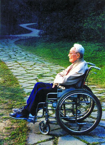 但也正是由于在完成《隨想錄》一百五十多篇寫(xiě)作后,巴金仍不曾放下他那堅(jiān)強(qiáng)的筆桿,他在九十歲(1994)以后身體確實(shí)越來(lái)越顯得衰老了,不僅頭發(fā)全白,他那老年性慢性支氣管炎更加嚴(yán)重,“文革”結(jié)束后不久就患上的帕金森氏病更使他行動(dòng)受到影響,連筆也愈來(lái)愈不聽(tīng)使喚;同時(shí)由于身體嚴(yán)重缺鈣,引起胸脊椎骨折和體位性血壓波動(dòng)。他在八十年代中期還可以站在特制的圈車(chē)?yán)镒邉?dòng),而現(xiàn)在只好坐在輪椅上過(guò)日子;當(dāng)然,每天幾乎有一半時(shí)間還是躺在床上。