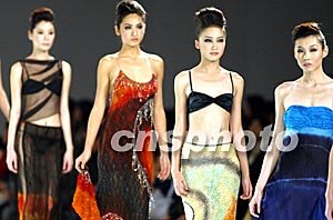嚴(yán)德良(新加坡)時(shí)裝發(fā)布會(huì)二十五日在北京舉行的中國國際時(shí)裝周上亮相,模特身著設(shè)計(jì)新穎的絲綢服裝展示女性的婉約美麗。中新社記者:毛建軍