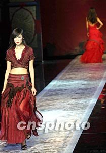 十一月二十五日晚,紫禁城的四季·馬克張春夏高級(jí)時(shí)裝發(fā)布會(huì)在北京中國(guó)大飯店舉行,模特為觀眾演繹了一場(chǎng)雍容華貴、充滿皇家氣勢(shì)的視覺盛宴。中新社記者:盛佳鵬