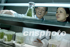 聯(lián)合國糧農(nóng)組織首席顧問、中國著名雜交水稻專家袁隆平院士,十一月在湖南長沙郊外的雜交水稻研究中心實驗室研究雜交水稻,水稻畝產(chǎn)實現(xiàn)八百公斤后,提高到九百公斤是袁隆平院士的新目標。據(jù)悉,水稻畝產(chǎn)從六百公斤提高到八百公斤已是一個世界性的難題。中新社記者:張宇