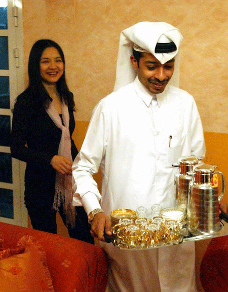 2001年7月,諸宸第一次前往穆罕默德的家鄉(xiāng)——卡塔爾。出發(fā)前,她做了一個(gè)夢(mèng),夢(mèng)到自己似乎失去了所有。那種陌生感和恐懼感一下子襲來(lái),讓她心里頓時(shí)充滿了陰影。從北京到多哈沒有直航航班,第一站要到馬來(lái)西亞吉隆坡轉(zhuǎn)機(jī)。這是他們故事開始的地方,而現(xiàn)在她第一次前往自己的婆家,卻注定要再次來(lái)到這個(gè)讓她的命運(yùn)發(fā)生重大轉(zhuǎn)折的地方。她注視著那些身著黑袍、頭裹頭巾、面紗遮臉的阿拉伯婦女,心里充滿了別樣的情緒,想起關(guān)于多哈一片沙漠草木的傳說,不知自己的旅途將如何艱辛。