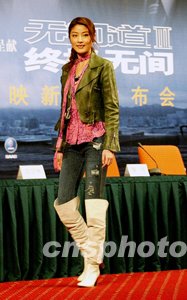 陳慧琳出席無間道北京記者見面會。中新社記者:鄭萍萍