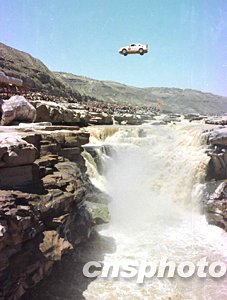 柯受良1997年駕車飛越黃河壺口瀑布。中新社記者:王瑤