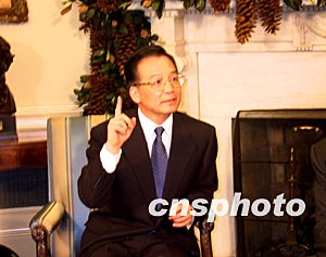 當(dāng)天上午的歡迎儀式后,溫家寶與布什先進(jìn)行了小范圍會談,會見了記者,然后雙方又進(jìn)行了大范圍會談,就中美關(guān)系和一些重大國際問題交換了看法。