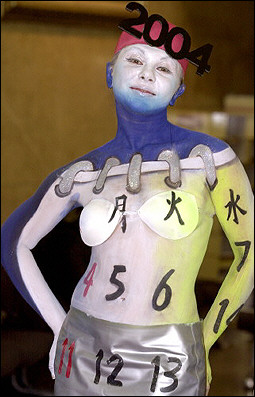 韓國漢城的一項(xiàng)商業(yè)活動中,模特展示新奇時尚彩繪——日歷女孩。