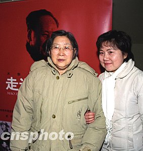 十二月十一日下午,《走近毛澤東》全國(guó)首映式在北京大學(xué)百年紀(jì)念大講堂隆重舉行,毛澤東的女兒李敏出席首映式并與導(dǎo)演艾欣合影留念。作者:徐曦弋