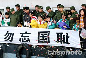 從昨天起,《狂雪》詩(shī)碑在南京大屠殺遇難同胞紀(jì)念館和"和平大鐘"落成等活動(dòng)陸續(xù)舉行。有關(guān)方面介紹說:為悼念南京大屠殺三十萬同胞遇難六十六周年,南京市安排了系列活動(dòng),這些系列活動(dòng)的主題是,悼念遇難同胞,銘記歷史教訓(xùn);維護(hù)世界和平,促進(jìn)共同發(fā)展。這些活動(dòng)包括將于今晚舉行的“和平之聲——中日友好南京演唱會(huì)”和明天舉行的第二屆“南京國(guó)際青年和平論壇”。