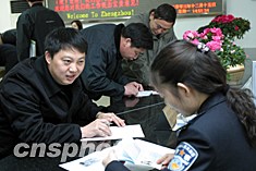 十二月十五日,幾名市民正在鄭州市公安局出入境管理處辦理赴港澳的證件。來自鄭州市公安局出入境管理處的數(shù)字顯示,隨著春節(jié)的臨近,前來辦理出境旅游手續(xù)的民眾與日俱增。作者:慎重