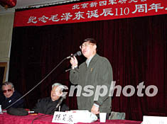 十二月十六日,北京新四軍研究會(huì)在京隆重舉行“紀(jì)念毛澤東誕辰一百一十周年座談會(huì)”,新四軍研究會(huì)會(huì)長(zhǎng)張铚秀將軍(中),副會(huì)長(zhǎng)魯冰將軍(左),副會(huì)長(zhǎng)、中國(guó)人民對(duì)外友好協(xié)會(huì)會(huì)長(zhǎng)陳昊蘇(右)與新四軍所屬各師分會(huì)代表近二百人共同緬懷了毛澤東領(lǐng)導(dǎo)人民驅(qū)逐日寇,建立新中國(guó),開拓中華復(fù)興之路的豐功偉績(jī)。作者:徐曦弋
