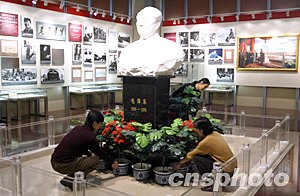 2003年12月26日是毛澤東誕辰110周年,位于北京天安門廣場上的毛主席紀念堂將舉辦多項活動隆重紀念,紀念堂中的“毛澤東展室”經過精心布置準備接待參觀者。中新社記者:任晨鳴