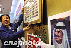 由香港著名畫家劉宇一設(shè)計的“新千年世界元首郵票大全”十九日起在北京貴友大廈獨家銷售,這組由一百九十位國家元首畫像構(gòu)成的世界張數(shù)最多的大聯(lián)張郵票售價兩千九百元人民幣并需要提前預(yù)定。其中倍受矚目的伊拉克前總統(tǒng)薩達(dá)姆頭像郵票更被放大張貼,成為這組郵票的銷售熱點。中新社記者:廖文靜