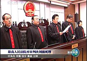 中新網(wǎng)12月22日電 最高人民法院今天(22日)上午在遼寧省錦州市中級人民法院對劉涌組織、領(lǐng)導(dǎo)黑社會(huì)性質(zhì)組織一案經(jīng)再審后作出判決,判處劉涌死刑。宣判后,遼寧省鐵嶺市中級人民法院遵照最高人民法院下達(dá)的執(zhí)行死刑命令,當(dāng)日對劉涌執(zhí)行了死刑。
