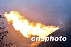 圖:重慶開縣天然氣井噴事故24日晚井噴現(xiàn)場