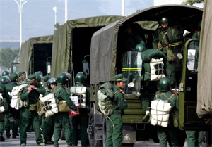 圖:武警開赴“12·2 3”井噴事故搶險救災現(xiàn)場