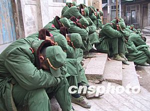 連日參加搶險(xiǎn)疲憊不堪的武警官兵在搶險(xiǎn)間隙小憩。作者:鄒輝