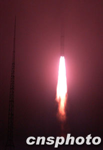 北京時間三十日凌晨三時許,中國“雙星計劃”的第一顆衛(wèi)星“探測一號”在西昌衛(wèi)星發(fā)射中心由“長征二號丙”改進(jìn)型運(yùn)載火箭發(fā)射升空。至此,二00三年中國六次航天發(fā)射全部告捷,也為中國航天年畫上一個圓滿的句號。本次衛(wèi)星發(fā)射是中國運(yùn)載火箭迄今為止最高的一次飛行,“探測一號”也因此成為中國目前軌道距地球最遠(yuǎn)的一顆衛(wèi)星。 中新社記者 張煒 攝
