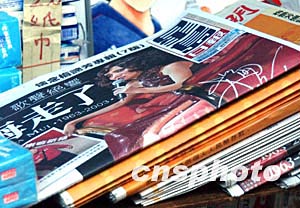 藝人梅艷芳因子宮頸癌導(dǎo)致肺功能失調(diào),于十二月三十日凌晨二時五十分在香港病逝,香港部份媒體連夜趕工再版,刊登最新消息,致使三十日報紙有不同版本。圖為清晨香港報攤加緊整理報紙以饗讀者。中新社記者:錢興強(qiáng)
