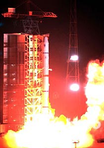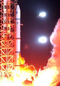 十二月三十日凌晨三時零六分,在西昌衛(wèi)星發(fā)射中心,“地球空間雙星探測計(jì)劃”(簡稱雙星計(jì)劃)中的探測一號衛(wèi)星由長征二號丙改進(jìn)型運(yùn)載火箭(CZ-2C/SM)發(fā)射升空!半p星計(jì)劃”是首個由中國提出的空間探測國際合作計(jì)劃。探測二號衛(wèi)星將于半年后發(fā)射。中新社記者:張煒