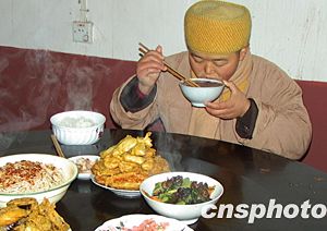 十二月三十日正是農(nóng)歷臘月初八,在中國民間自古有吃臘八粥慶賀五谷豐收的習(xí)俗。當(dāng)日重慶市奉節(jié)縣清靜庵僧人,在做佛事并祈求新年幸福之后,在餐桌前享用臘八粥。作者:周會(huì)