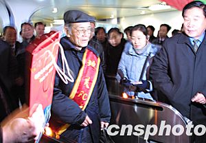 北京地鐵13號(hào)線自動(dòng)收費(fèi)系統(tǒng)(簡(jiǎn)稱AFC系統(tǒng))三十一日早晨五點(diǎn)半正式開通,作為新系統(tǒng)的第一位乘客七十歲的老人洪先生身披紅色綬帶通過(guò)了地鐵自動(dòng)檢票閘機(jī)口。中新社記者:廖文靜
