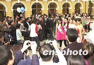 佳麗們游覽市政廳廣場(chǎng)時(shí)引起許多澳門市民紛紛圍觀。作者:李剛