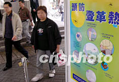 一月七日,香港衛(wèi)生署證實一宗外地傳入登革熱個案,并呼吁市民提高警覺預防。圖為鬧市街頭預防登革熱宣傳處處可見。作者:潘索菲
