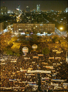 同樣是上周日,約10萬名以色列人在特拉維夫集會示威,反對沙龍清除約旦河西岸的部分猶太定居點。
