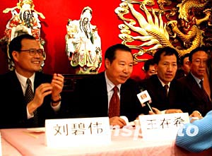 中國國臺(tái)辦副主任王在希(左二)十三日抵達(dá)紐約與四百多名僑胞見面,非常坦率地闡述了中國政府對(duì)臺(tái)灣問題的立場(chǎng)和近期的政策,表示中國政府對(duì)任何“臺(tái)獨(dú)”分裂活動(dòng)都有充分準(zhǔn)備,有決心、有能力、有辦法確保國家主權(quán)和領(lǐng)土的完整,中國駐紐約總領(lǐng)事劉碧偉(左一)、美東華人社團(tuán)聯(lián)合總會(huì)共同主席梁冠軍(左三)等出席了見面會(huì)。中新社記者:趙海燕