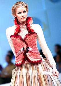 香港1月15日舉辦“香港國(guó)際時(shí)裝設(shè)計(jì)師表演”專(zhuān)場(chǎng),圖為模特展示來(lái)自加拿大時(shí)裝設(shè)計(jì)師陳慧南的作品。中新社記者:洪少葵