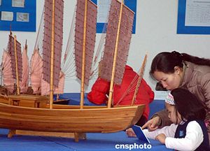 “紀(jì)念鄭和下西洋600周年仿真航模展覽”一月十七日在蘇州吳作人藝術(shù)館展出。展覽共展出了近四十件模型,包括仿鄭和下西洋船隊(duì)模型,各種現(xiàn)代海船、艦艇模型以及圖片資料吸引了前來(lái)參觀的中小學(xué)生。作者:蔣振江