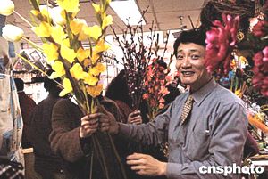 北京禮品工藝花卉市場(chǎng)在春節(jié)前夕生意異常火爆,銷售工藝花卉的攤主忙得樂(lè)不可支。中新社記者:鄒憲
