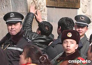 北京最有地方特色的白云觀廟會(huì)正式開幕。數(shù)以萬計(jì)的北京市民涌向白云觀,爭(zhēng)先恐后地觸摸石猴浮雕。因?yàn)槭呛锬晔兹,“摸石猴”的市民特別多,武裝警察、公安民警和保安員共同在現(xiàn)場(chǎng)維持秩序,保障游客安全。中新社記者:張煒