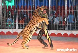 22日大年初一,北京眾多市民一早趕往地壇廟會(huì),欣賞本屆廟會(huì)的特色節(jié)目——歡樂馬戲總動(dòng)員。驚心動(dòng)魄的人虎大戰(zhàn)讓觀眾大飽眼福。作者:徐曦弋