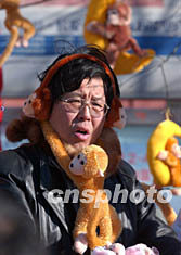 春節(jié)期間,北京各大廟會(huì)熱鬧非凡,一名賣猴玩具的小販正忙碌著在廟會(huì)上淘金。“拜神、購(gòu)物、娛樂(lè)”是人們逛廟會(huì)的主要活動(dòng),廟會(huì)上旺盛的人氣帶動(dòng)了獨(dú)特的廟會(huì)經(jīng)濟(jì)。中新社記者:張煒