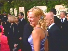 烏瑪舒曼的緞面淡紫色晚禮服,和莎莉塞隆鵝黃色波浪狀晚禮服,在今天也備受贊譽,令二人顯得落落大方。尤其是莎莉塞隆,在經(jīng)歷電影“女魔頭”中天字第一號宇宙無敵的超丑妝打扮之后,今天根本就讓觀眾“驚為天人”。