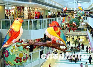 盡管禽流感襲擊亞洲諸多城市,但是香港一些商場依然用繽紛璀璨的禽鳥燈飾來裝飾即將來臨的元宵佳節(jié)。作者:潘索菲