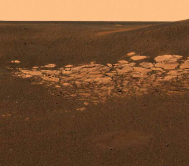 1月28日美國(guó)宇航局公布了利用“機(jī)遇”號(hào)火星車發(fā)回的數(shù)據(jù)合成的照片。這張高清晰度的火星照片清晰地記錄了裸露在火星地表的巖床!皺C(jī)遇”號(hào)預(yù)計(jì)將在下周鉆出著陸艙,開(kāi)始火星漫步探測(cè)。